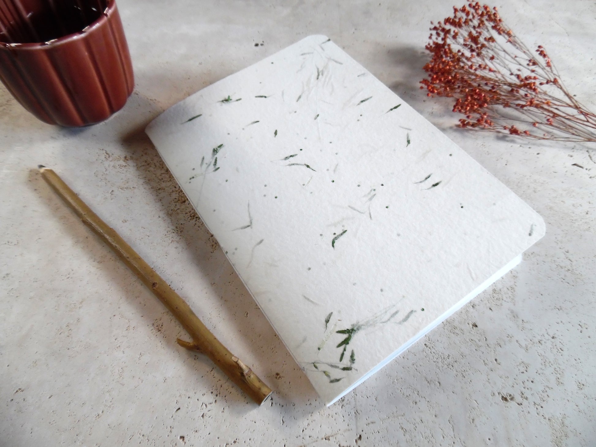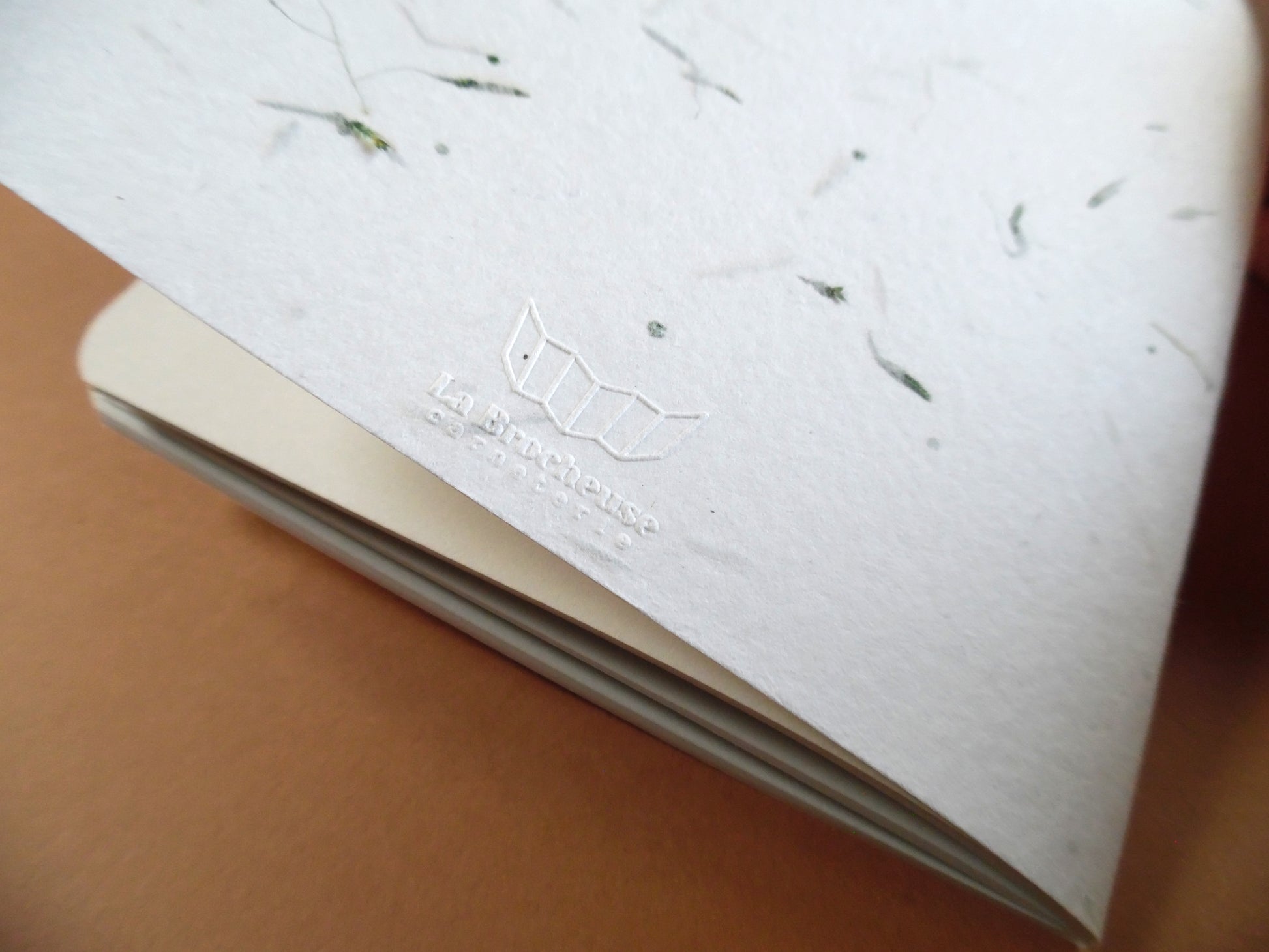 Chaque exemplaire possède sa propre identité : la couverture, façonnée à la main dans un moulin traditionnel, révèle des textures et des nuances qui varient d’un carnet à l’autre.