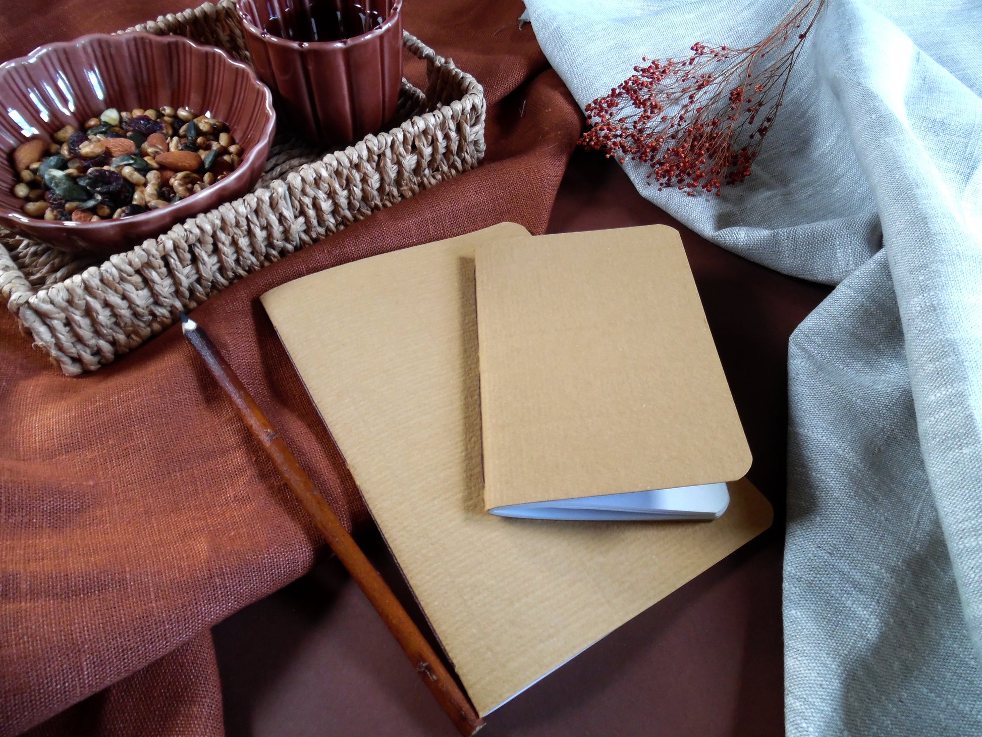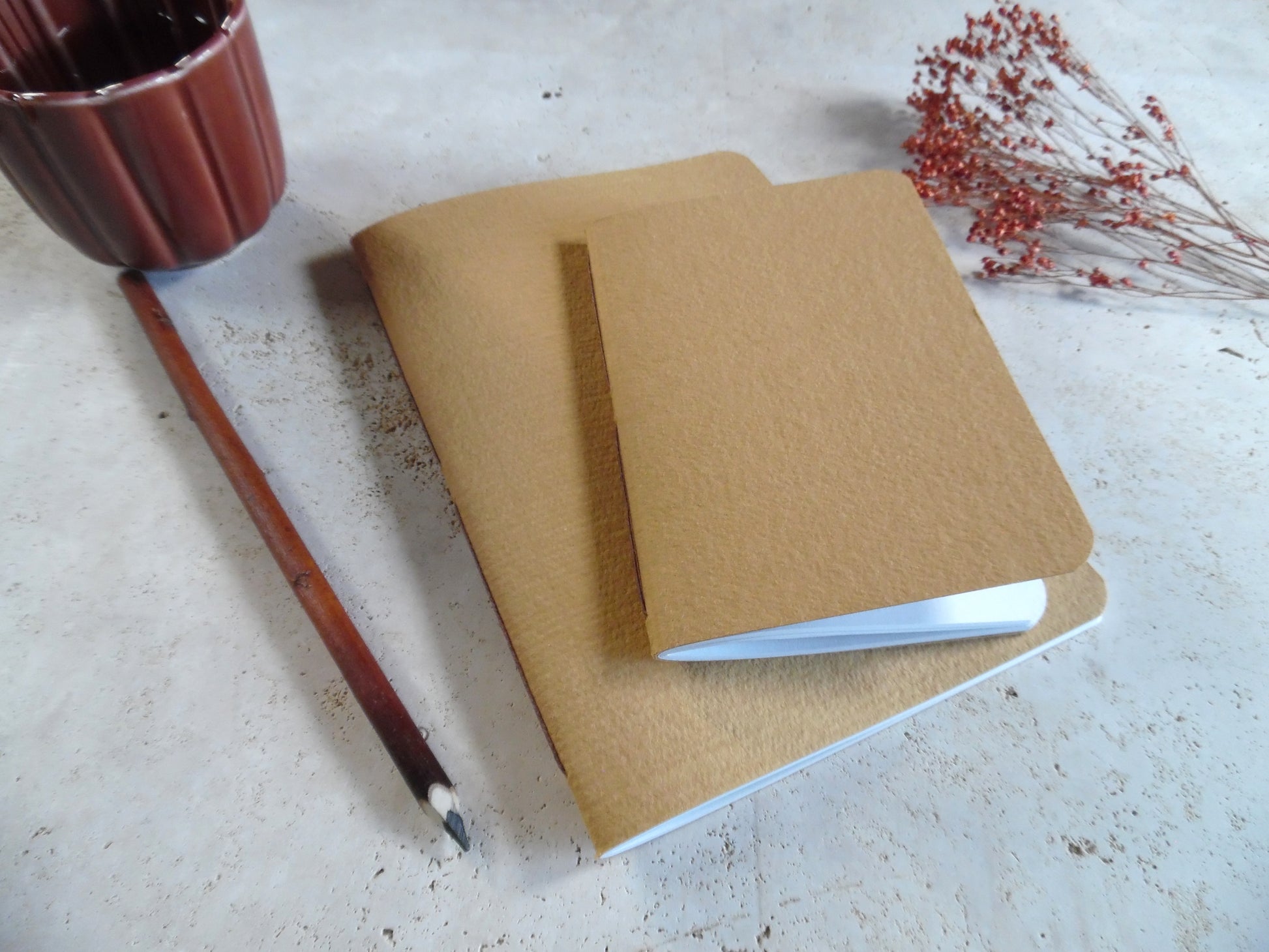 Ces irrégularités naturelles sont la signature d’un savoir-faire artisanal, et font de chaque carnet une pièce singulière. Aucun n’est tout à fait identique, c’est ce qui les rend précieux.