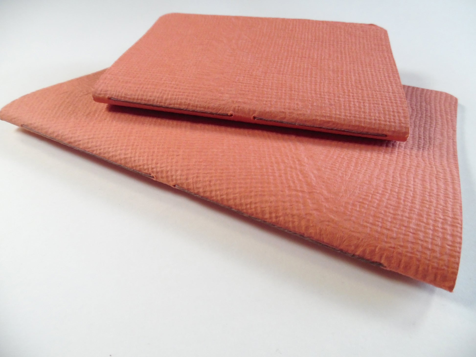- Couverture en papier chiffon rouge brique tramé sur toile de jute